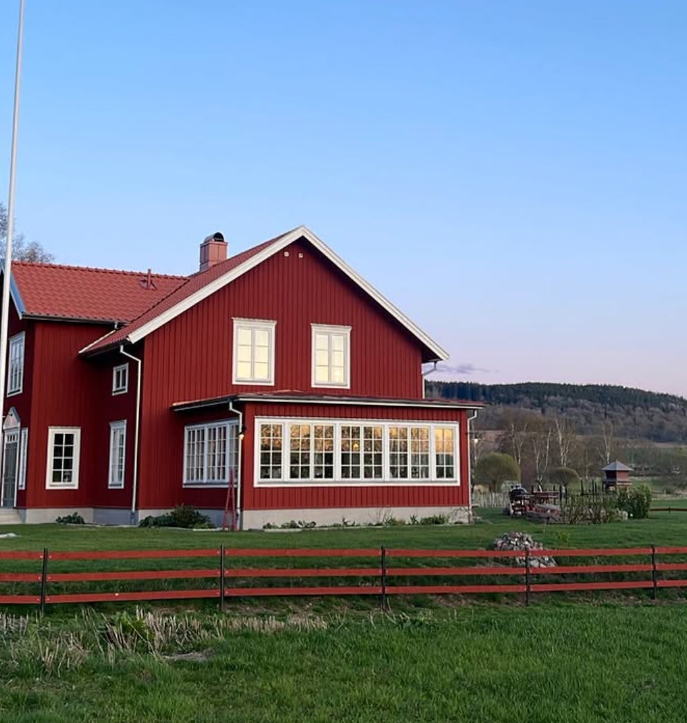 I Skärstadalen norr om Huskvarna har Malin och Erik och deras två barn hittat hem. Här har familjen byggt ett inbjudande falurött hus med spröjsade fönster. Utvändigt är huset en klassisk lantlig idyll – invändigt ett hem med traditionella val kombinerat med trendiga inslag och handplockade detaljer med mycket personlighet.