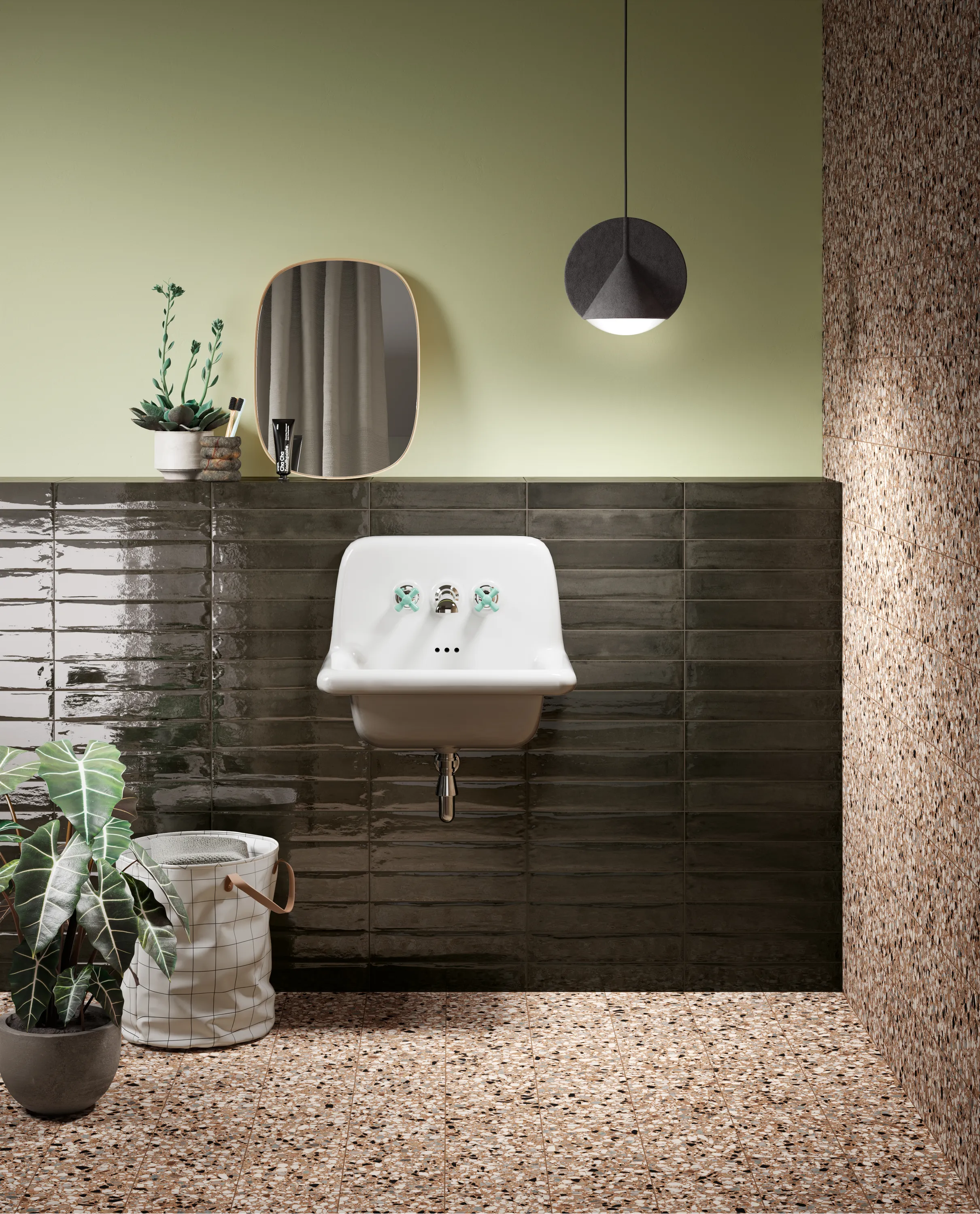 Svart blankt kakel som andas genuint hantverk – både vad gäller färg, form och yta. Vaga färgskiftningar i glasyren, den oregelbundna ytan och de mjuka kanterna ger en levande karaktär. Tack vare det långsmala formatet ges möjlighet till flera olika kreativa kakelsättningar, exempelvis traditionellt liggande, stående, tegelsättning eller trendigt fiskbensmönster (herringbone). Frammenti finns i flera fina färger.