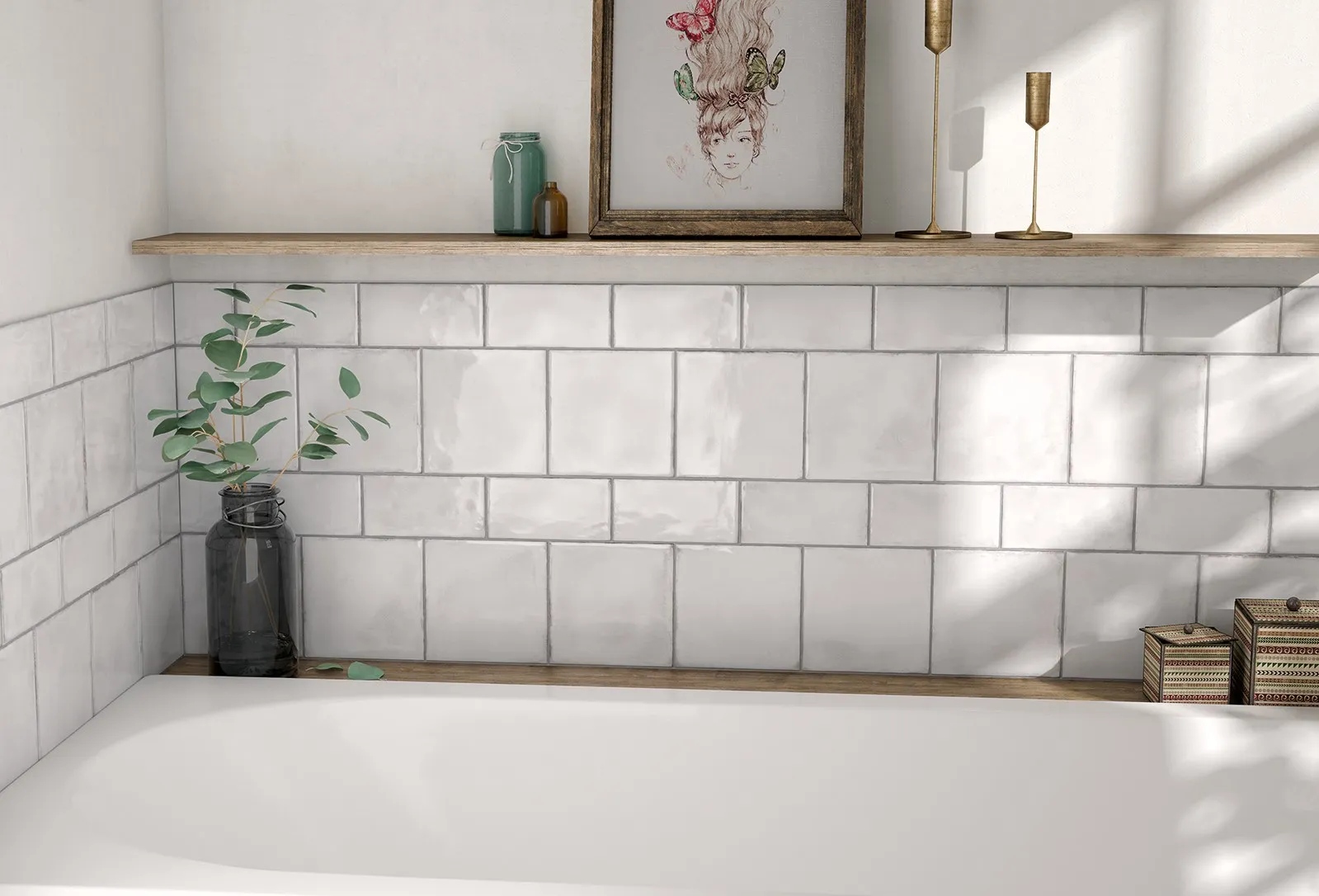 Splendours Vit är ett blankt kakel som andas vintage. Tack vare kaklets något oregelbundna yta skapas mjuka ljusreflektioner och glasyren skiftar i intensitet vilket ger ett levande, vackert helhetsintryck. I serien Splendours finns flera stillsamma och dova färger som med fördel kombineras med varandra.