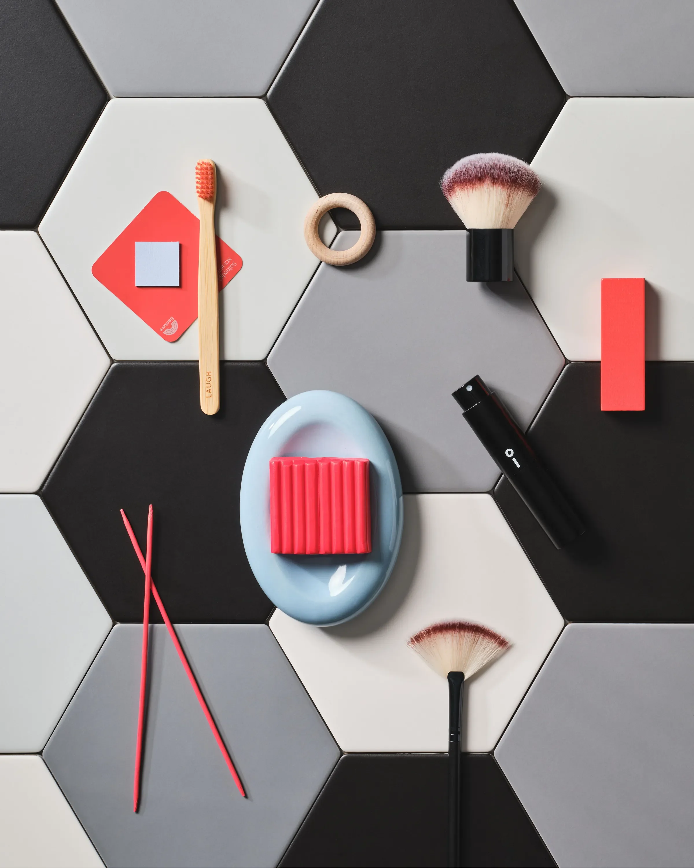 En formstark keramikserie med ett grafiskt uttryck. Hexagon finns i flera färger som med fördel går att kombinera. Använd en avvikande fogfärg för att förstärka mönstret eller en i samma ton för att dämpa.