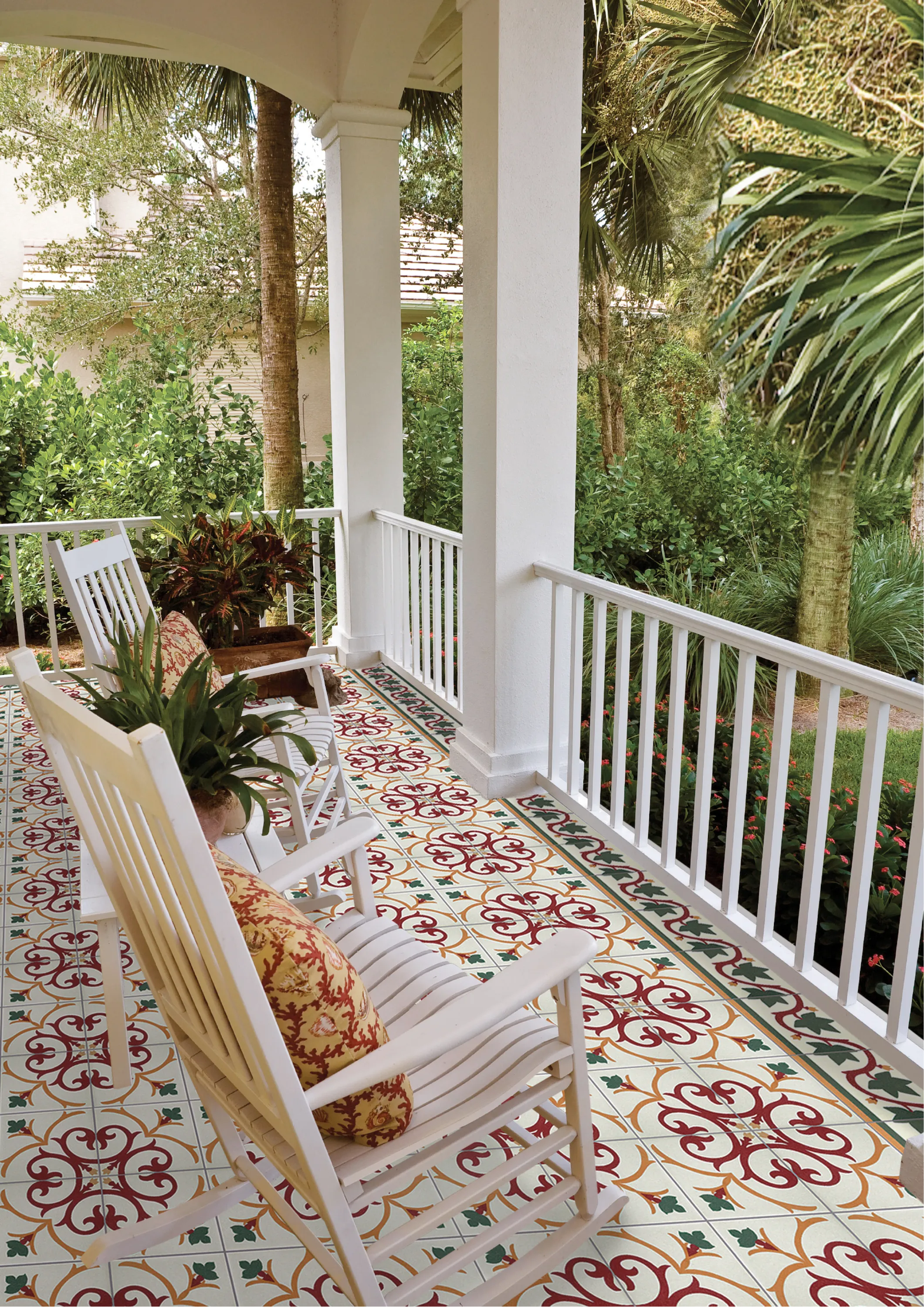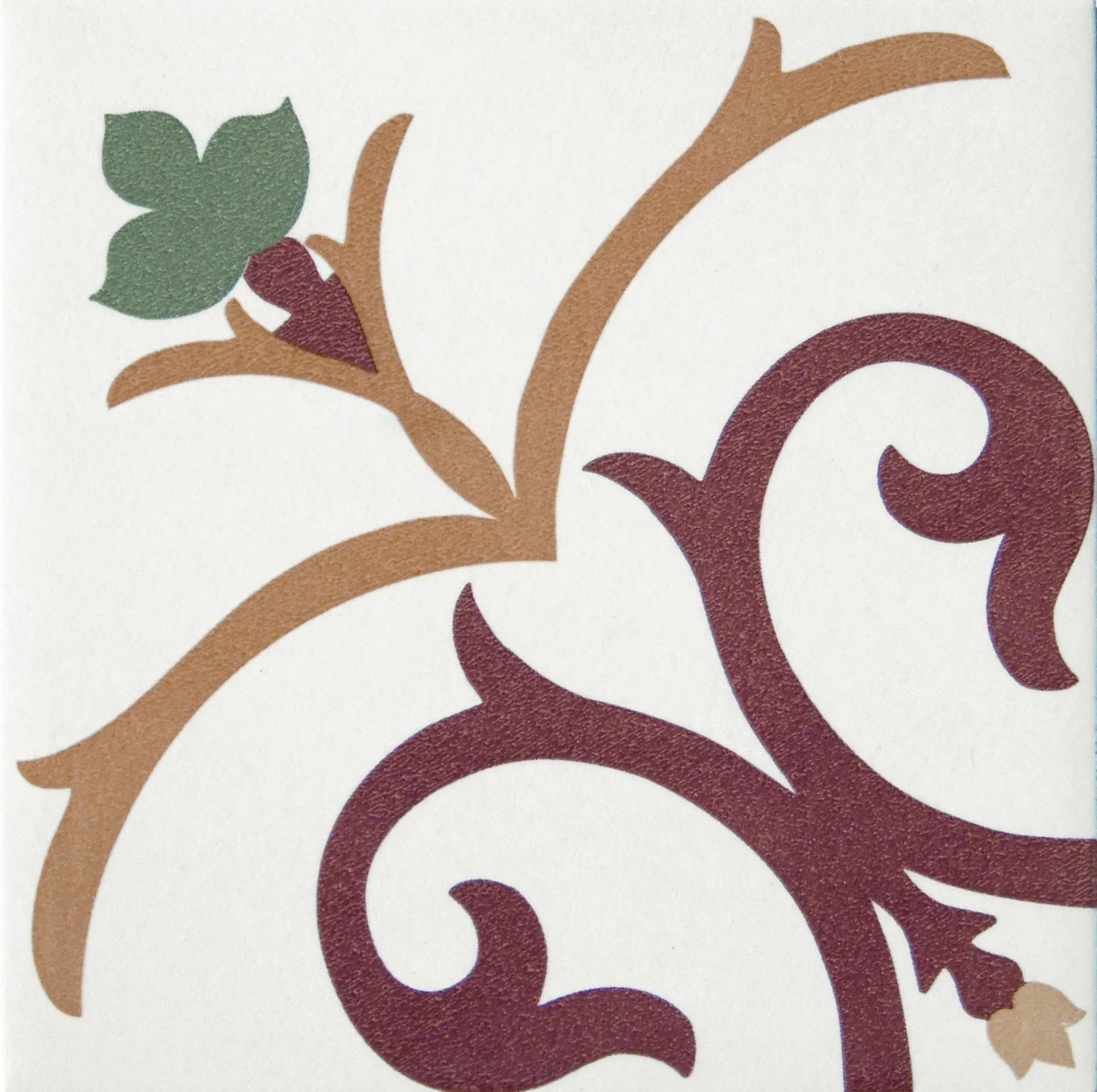 En mönstrad dekorplatta i rött, gult och grönt med marockanska influenser. Plattorna är frostsäkra och har en slät och lättskött yta. I serien Kerion ingår en mängd olika mönster i dämpade toner vilket ger möjlighet att skapa vackra och personliga ytor. Plattorna är frostsäkra och går att använda på golv och vägg, inomhus som utomhus på t.ex. balkongen, altanen eller i växthuset. En serie som är lika rätt i det moderna hemmet som i det lantliga och rustika! Komplettera gärna med tillhörande bård och kantdekor.
