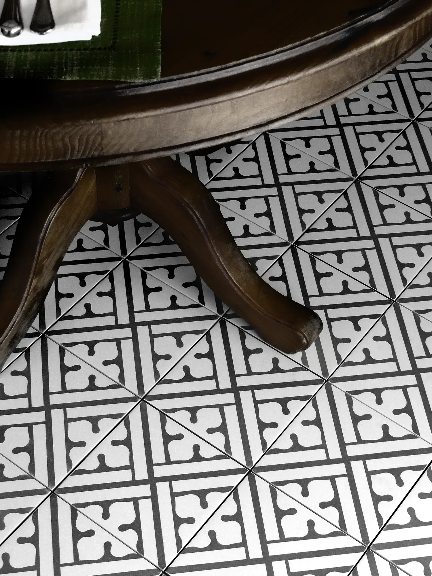 Dekorplatta i svart och vitt med ett marockanskinspirerat mönster. Plattorna är frostsäkra och har en slät och lättskött yta. I serien Kerion ingår en mängd olika mönster i dämpade toner vilket ger möjlighet att skapa vackra och personliga ytor. Plattorna är frostsäkra och går att använda på golv och vägg, inomhus som utomhus på t.ex. balkongen, altanen eller i växthuset. En serie som är lika rätt i det moderna hemmet som i det lantliga och rustika! Komplettera gärna med tillhörande bårder.