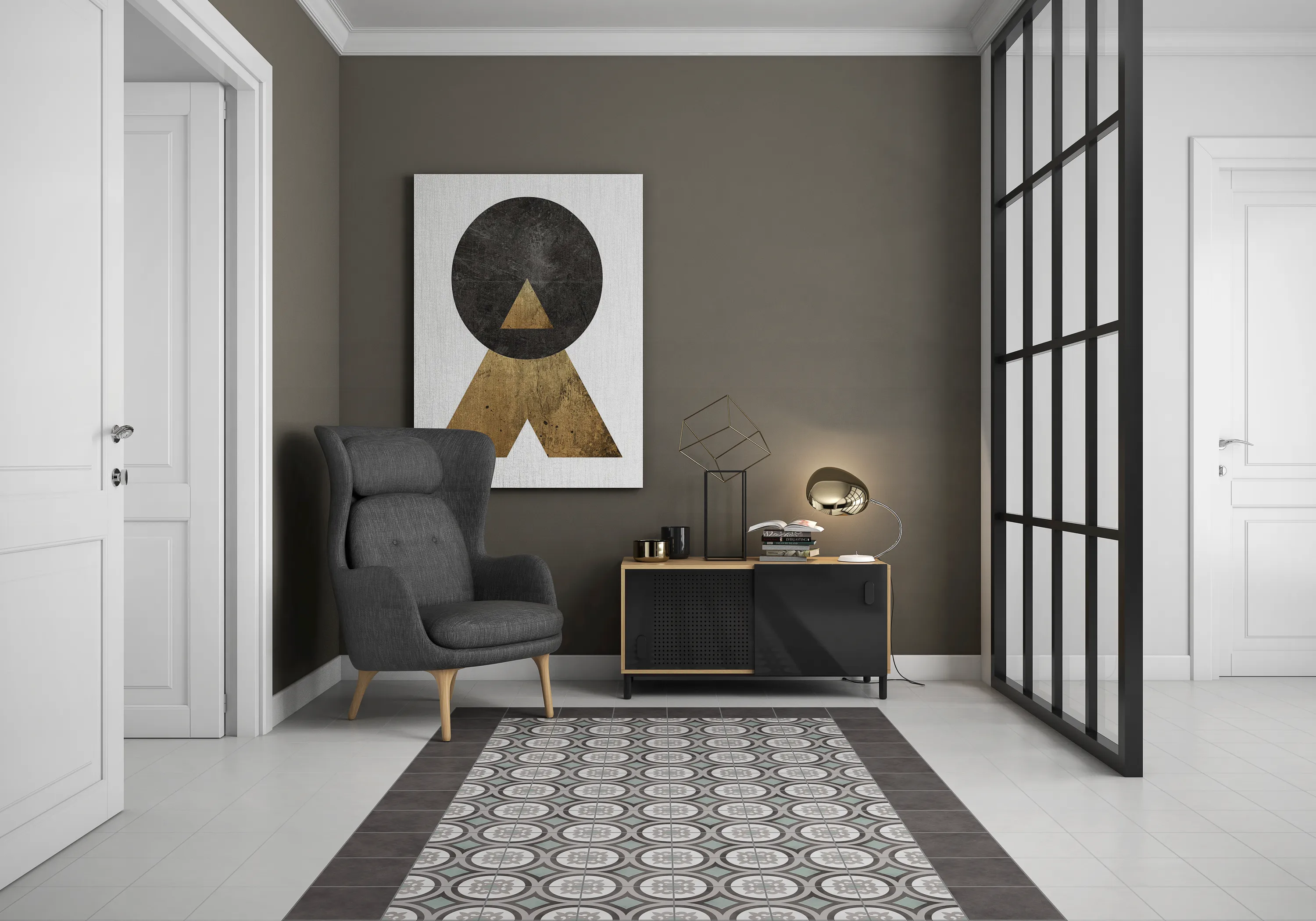 Mörkgrå klinker som ingår i klinkerserien Pobles. Färgen är svagt melerad. Serien består av enfärgade och mönstrade plattor, där dekorplattorna med distinkta grafiska mönster träder fram och ger en elegant och lekfull stil.