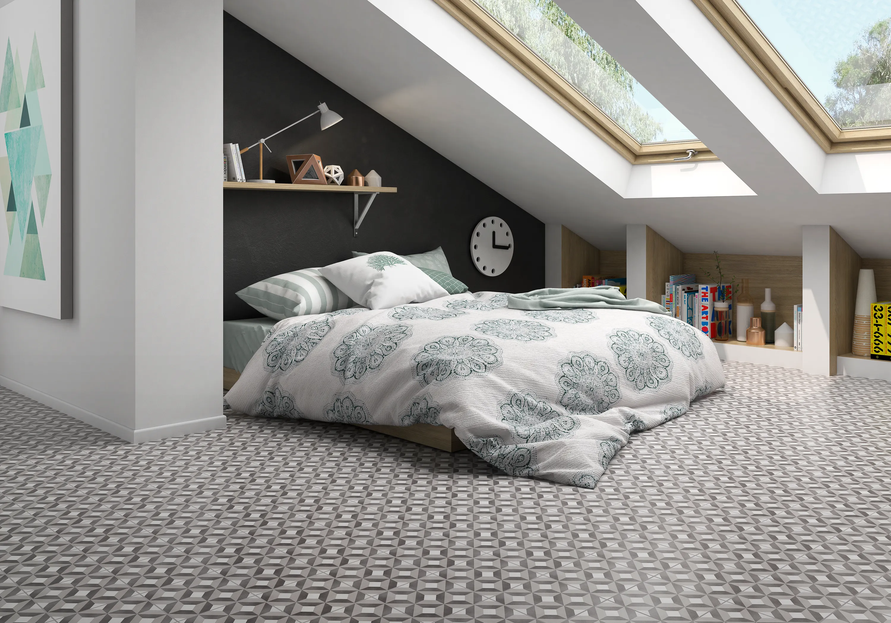 En elegant, men samtidigt lekfull dekorplatta med grafiskt mönster. Plattan ingår i klinkerserien Pobles som består av enfärgade och mönstrade plattor för golv och vägg. Använd de mönstrade plattorna på en större yta eller som en dekor. Pobles är frostsäker och kan användas utomhus, t.ex. på altan eller balkong.