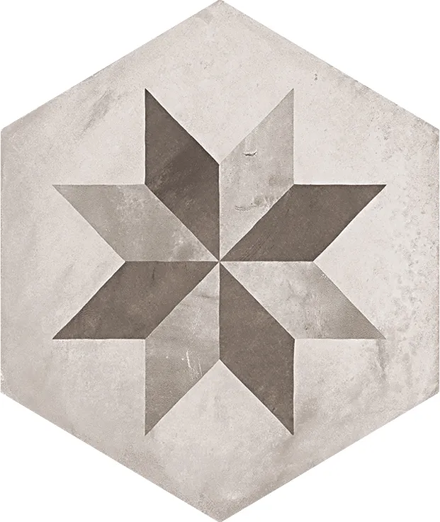 Klinker i det trendiga formatet hexagon (sexkantig klinker) med mönster i harmoniska färger i svart och grått. Den matta och melerade ytan ger en varm och mjuk känsla. Plattorna kommer i en färdig mix med olika motiv som är fina att blanda. Du kan välja att enbart använda mönstrade plattor eller välja att komplettera med enfärgade plattor från samma serie. Hexagonformatet passar in i de allra flesta stilar och passar lika bra på vägg som på golv, i husets alla rum, inomhus som utomhus. Exempelvis som hallgolv, på uteplatsen eller som dekor i badrummet eller på toaletten.