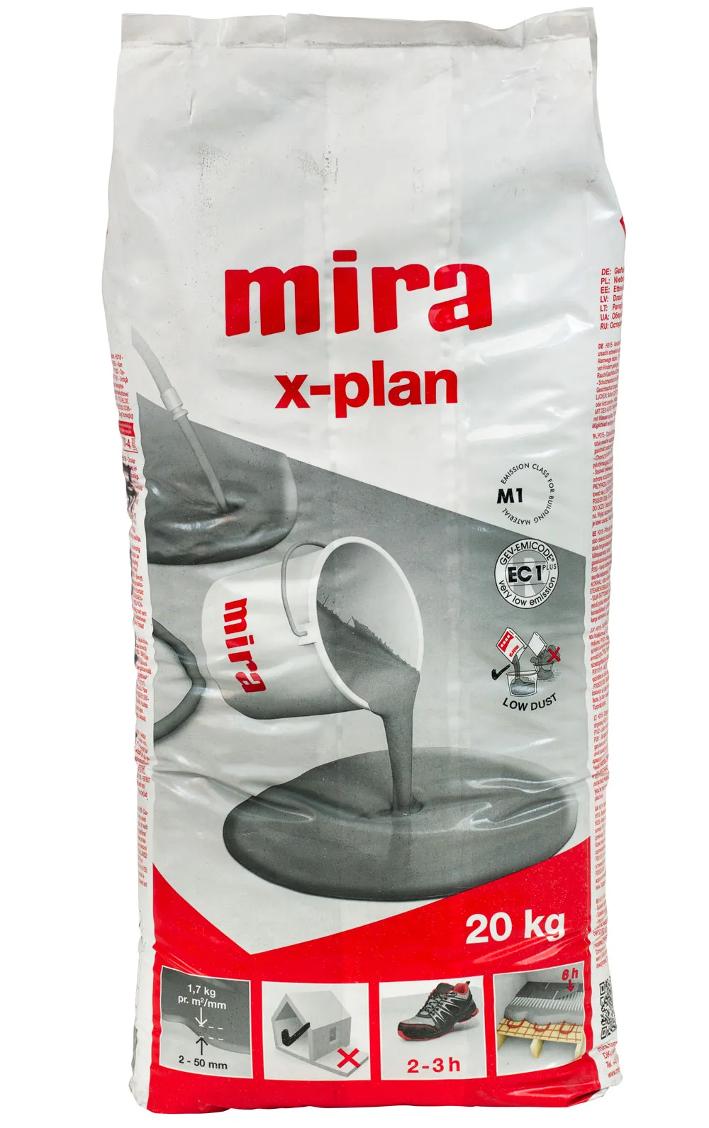 Användningsområde: Till planspackling och falluppbyggnad i såväl våta som torra utrymmen. x-plan är lämplig för alla typer av el- och vattenburen värmegolv. x-plan kan pumpas eller läggas för hand.