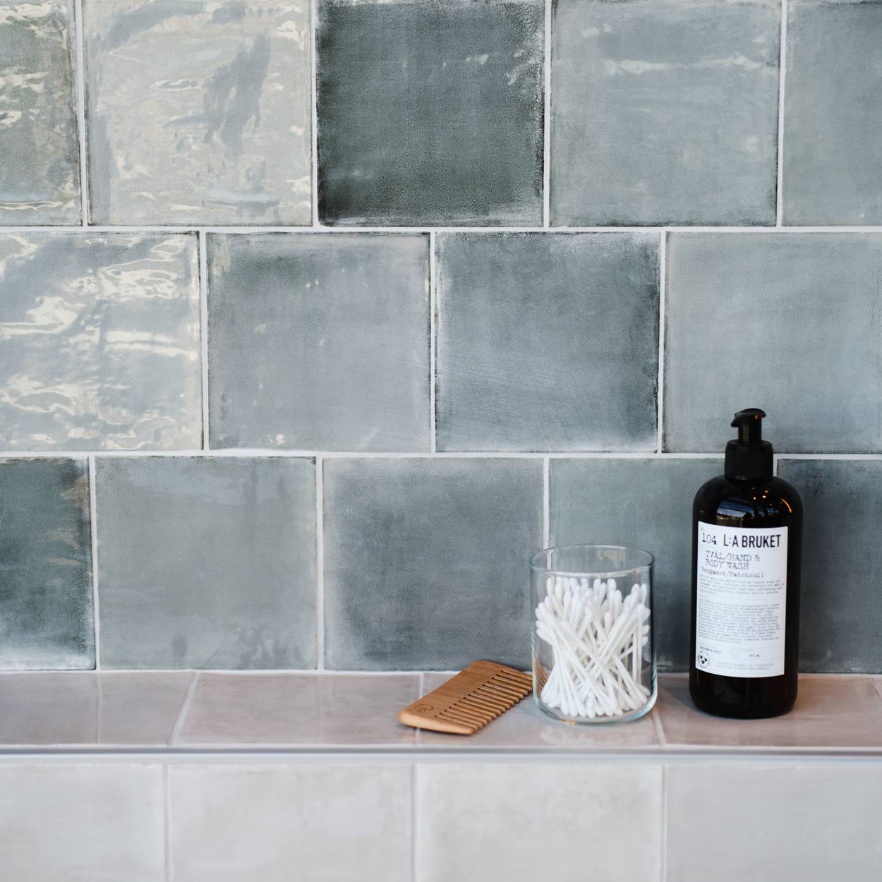 Fullända stilen med kakelserien Tsquare Vägg. Kaklet har ett rustikt och handgjort utseende med karaktär. Plattorna har en blank vacker glasyr med dekorativa nyansskiftningar.