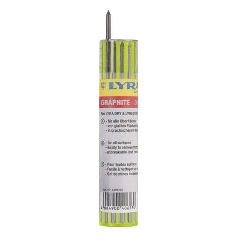 Reservstift grafit innehåller 12 grafitstift som är mjukare än en standardhård timmermanspenna, och fäster därmed bättre på fler underlag. Grafitstiftet kan torkas av med en fuktig trasa.
