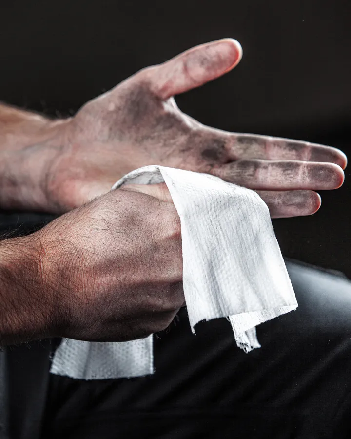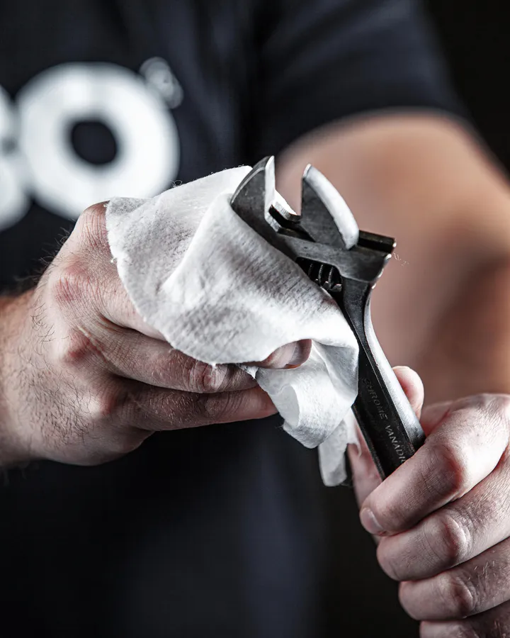 Rengöringsdukar med en grövre skrubbande sida och en finare rengörande sida. Används för att smidigt kunna ta bort fläckar av t.ex. lim, färg, fett, tjära, olja och andra beläggningar från händer, verktyg och andra hårda ytor. Fungerar även utmärkt för att ta bort golvlim (även MS) och golvlack. 60 st dukar/förpackning.